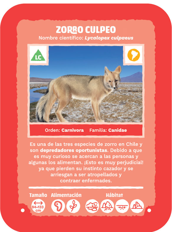 For this educational plan, the SMI-ICE-Chile team developed a series of teaching materials: maps, exhibition panels, magnetic sheets about types of habitats, a field log, stickers and a biodiversity game played with cards representing the local flora, fauna and landscape as well as the main characteristics of the Colla culture.