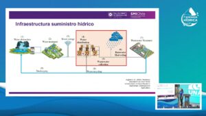 She then described the shift in model proposed by SMI Chile: moving towards shared infrastructure used by different actors across the territory. “This approach operates in other sectors, such as electricity supply in Chile, where different sources connect to a single grid that supplies the entire country,” she explained.